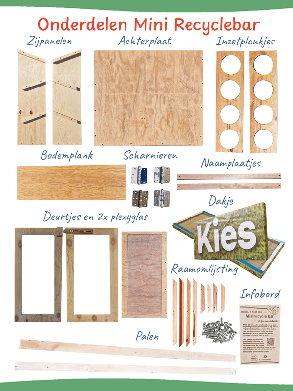 Jouw bar wordt door mensen met een afstand tot de arbeidsmarkt gezaagd en klaargemaakt, geheel uit lokaal verkregen restmaterialen. Je kunt het bouwpakket binnen het Groene Hart (Woerden en omstreken) voor €10,- laten bezorgen of kosteloos afhalen bij de Terugwinning.
